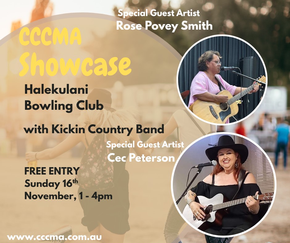 Another great day organised by CCCMA .Rosie is an experience artists having performed for a number of years in the duo Ebany & Ivy. Now you can catch Rosie right here at Halekulani Bowling Club on Sunday 16th November 2025 as a solo performer. Cec is also another very talented artist who has just moved back to the Huner Region, so we are very lucky to be able to showcase Cec ,as she is a very busy artist travelling the circuit. Both acts will be backed by the very best, the Kickin Country Band