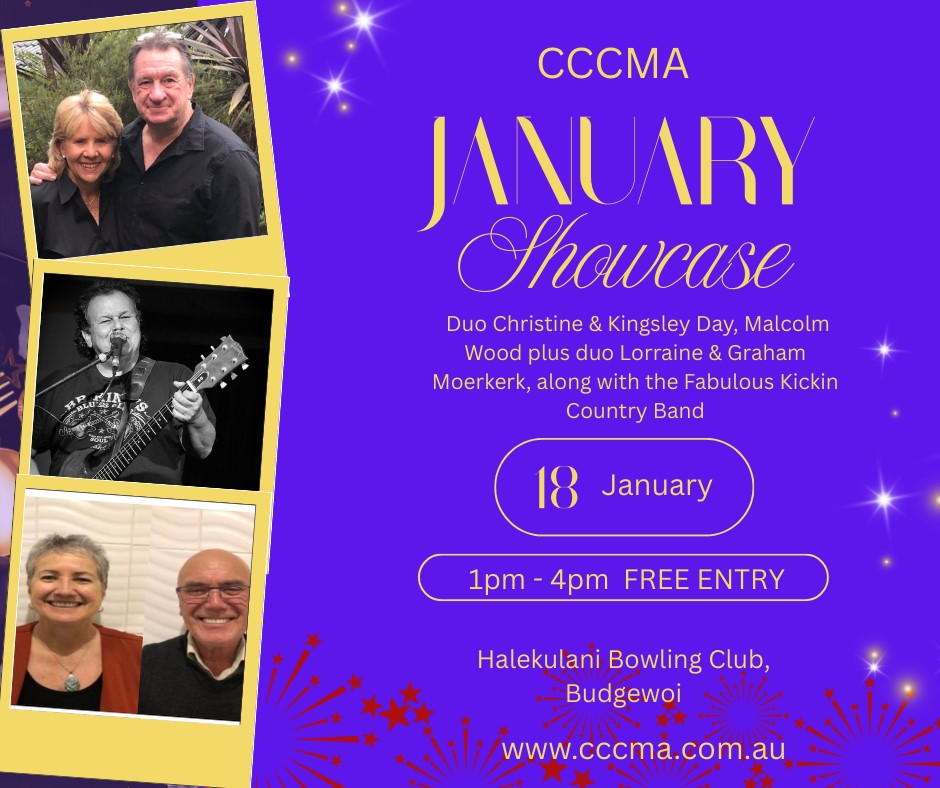 Come & check out these great artists, your only chance to see them here on the Coast. CCCMA Showcase 17th March 2024 @ Halekulani Bowling Club. Free admission 1pm